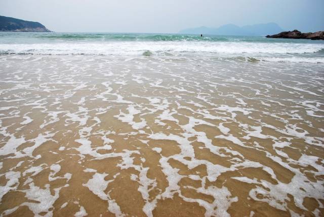 在这里可以看到如何造游艇——在沙滩边上,你可以看到的是放在岸上的一艘近两层楼高的游艇,后面是游艇厂,对面就是香港的平洲岛。这里的沙质一般,但沙滩、海水、及腹地的植被都丝毫未遭到破坏。岸边的木麻黄林和远处的青山可以让你感觉到到山海风光。
